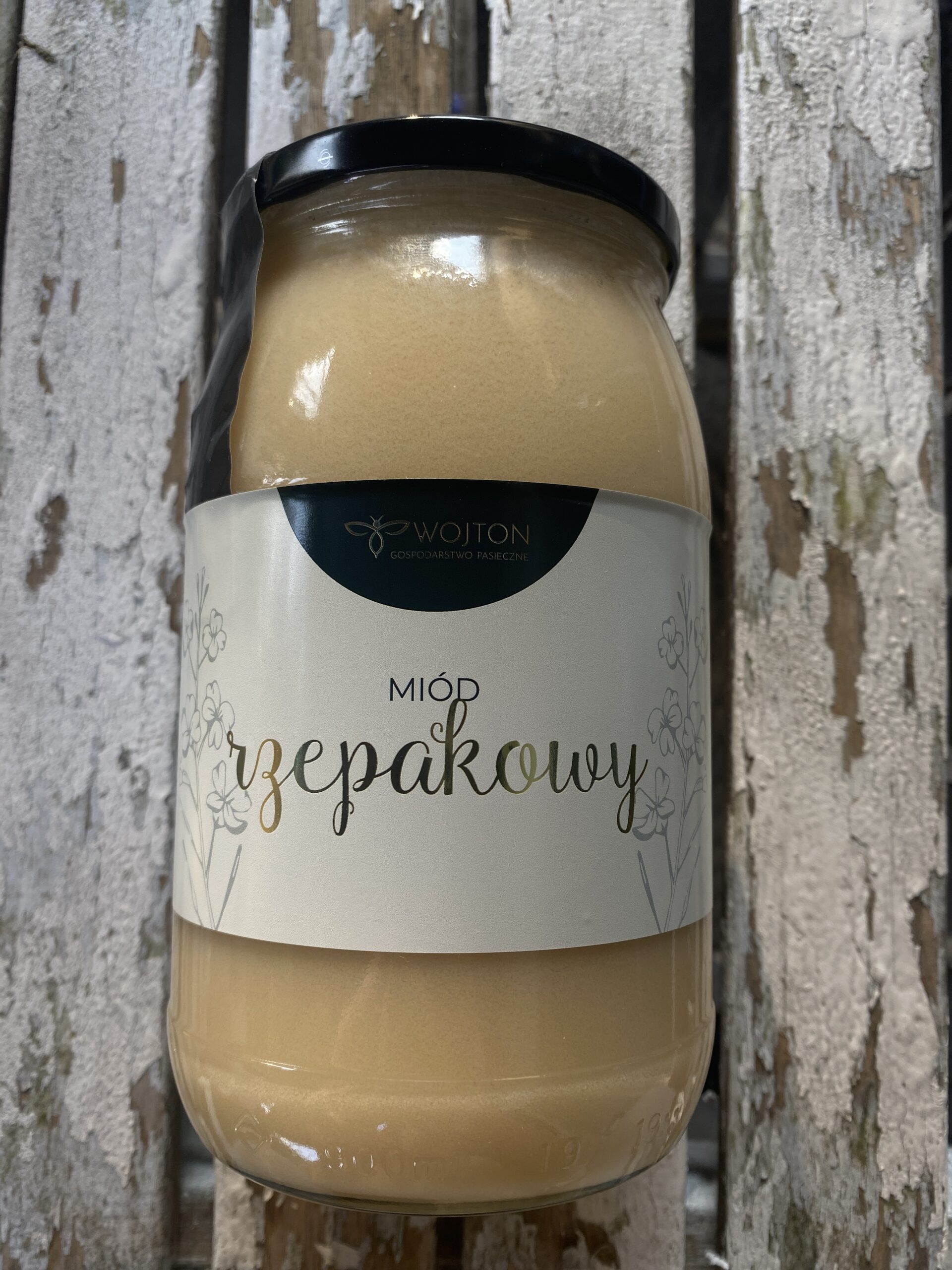 Pozyskiwany z nektaru kwiatów rzepaku, ma wyjątkowo jasną barwę – od kremowej po niemal białą – i delikatny, łagodny smak z subtelną nutą goryczki. Bardzo szybko krystalizuje, zmieniając się w miękką, smarowną masę, dzięki czemu jest idealny do kanapek czy deserów.
